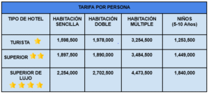 Día libre (Opcional City Tour o Tour de compras por persona $100.000)