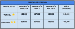 NO INCLUYE: Gastos no especificados en el programa.